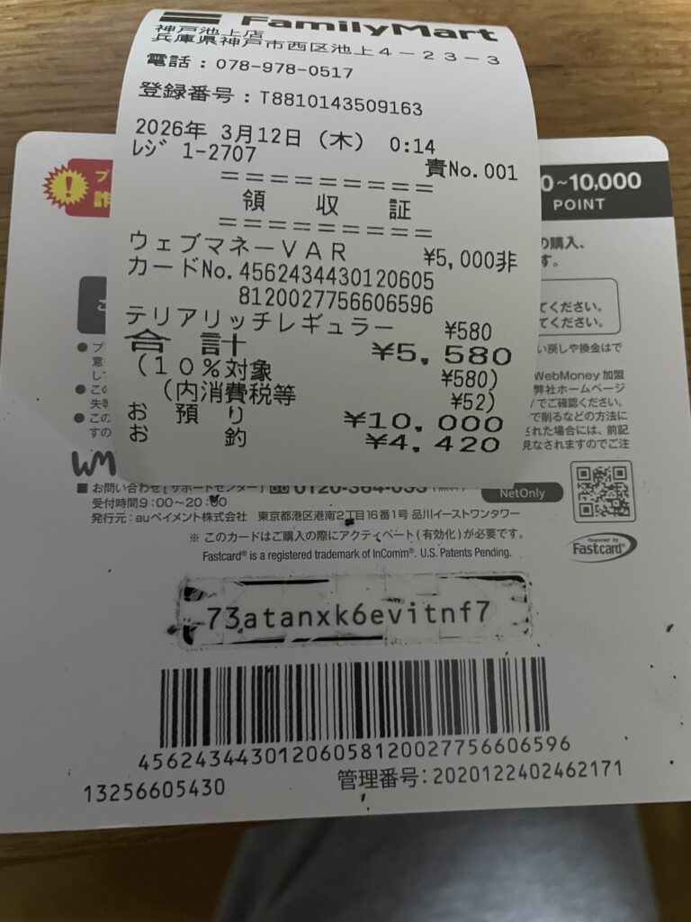▼銀色のシールが取れると、16桁のニンテンドープリペイドカードの番号が表示されます。